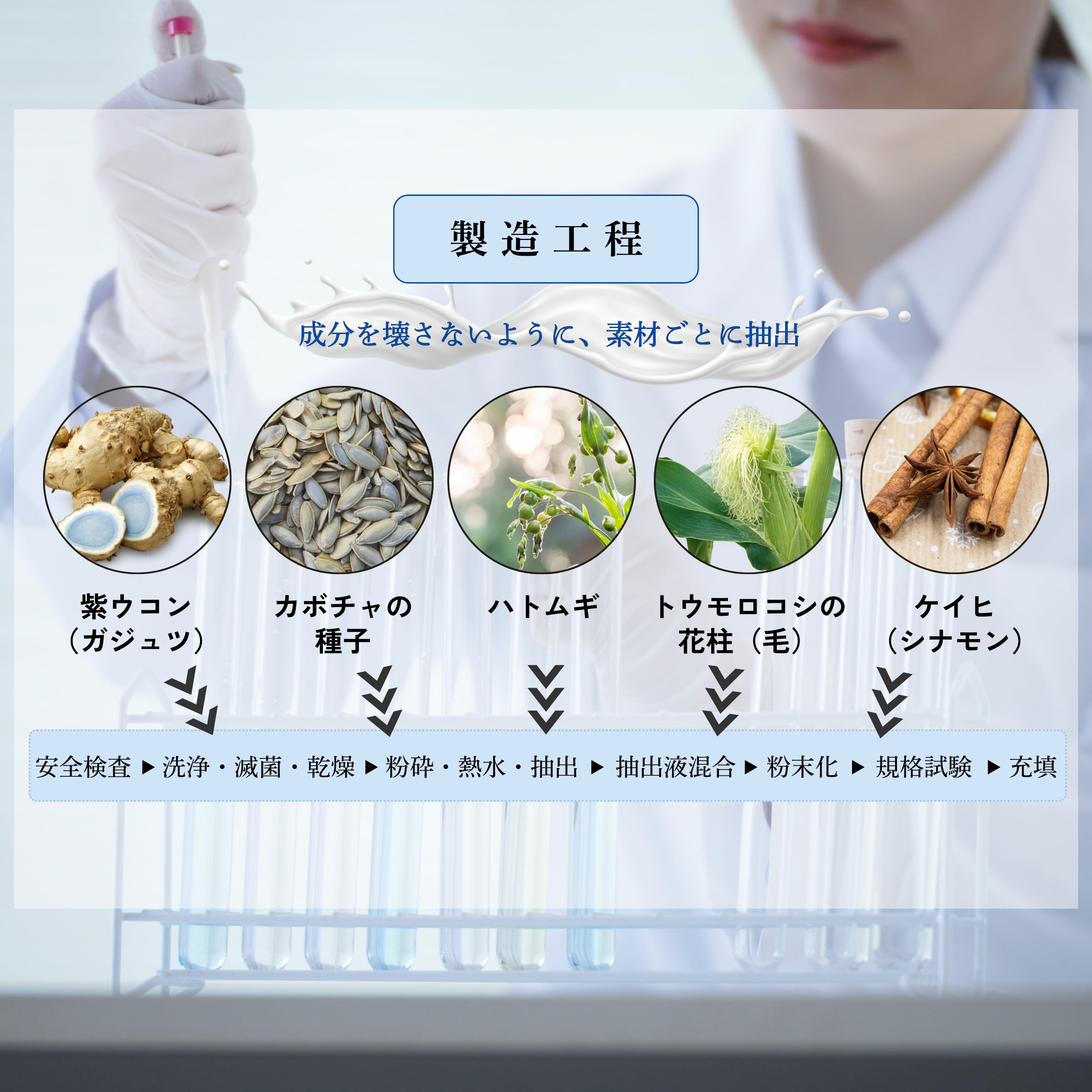 カボチャ種子・紫ウコン・ハトムギ・トウモロコシ花柱・ケイヒなど